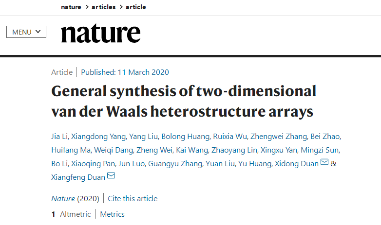 //www.nature.com/articles/s41586-020-2098-y General synthesis of two-dimensional van der Waals heterostructure arrays(Nature, 2020, DOI: 10.1038/s41586-020-2098-y)