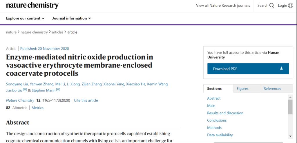 刘剑波副教授和英国布里斯托大学Stephen Mann院士作为共同通讯作者,合作报道了一种产生一氧化氮的人造细胞,具有血管舒张的生理效应,相关研究成果以题为“Enzyme-mediated Nitric Oxide Production in Vasoactive Erythrocyte Membrane-enclosed Coacervate Protocells”的文章在线发表在《Nature Chemistry》上。抢庄牛牛官方网站