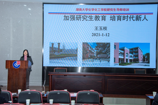 王玉枝书记首先带领大家深入领会了习近平新时代教育思想以及“四有好老师”“四个引路人”“四个相统一”,从聚焦政治引领、聚焦学风建设、抓好师德、抓牢投入四个方面讲述了如何加强研究生教育培育时代新人,并带领大家学习了“研究生导师指导行为准则”“师德失范行为典型案例”“抢庄牛牛官方网站