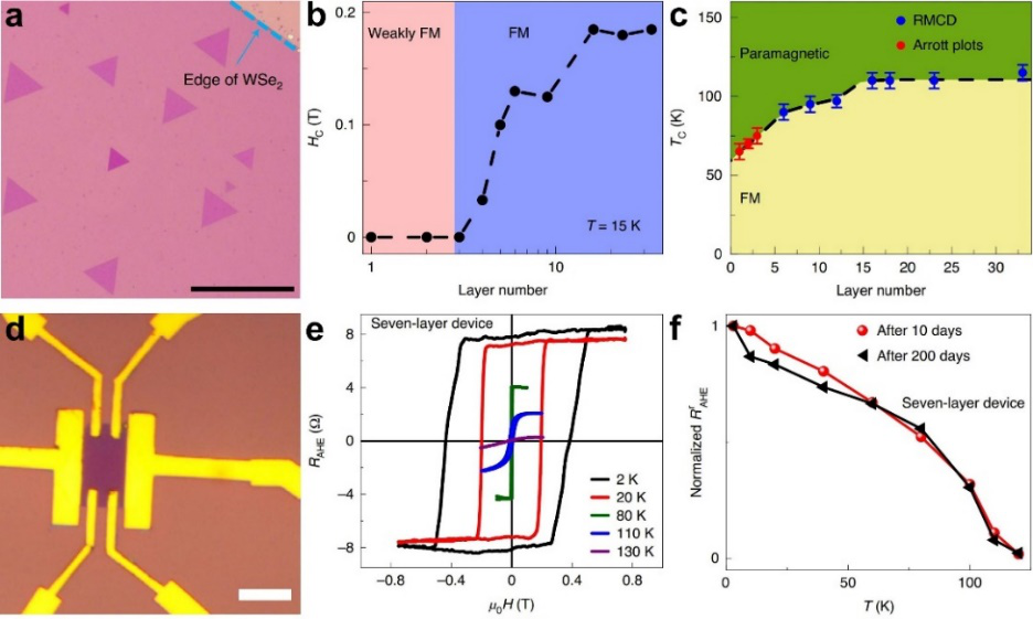 CrSe2的层厚依赖磁性与空气稳定性