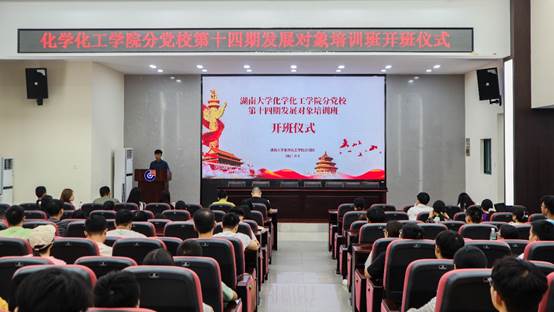 分党校第十四期发展对象培训班开班仪式在新化工楼D区报告厅隆重举行。院党委副书记、纪委书记刘松,党委副书记潘刚峰、湖南大学党委组织部靳琳以及学工办全体老师出席本次会议;全体学员、教职工老师共计91人参加本次开班仪式。