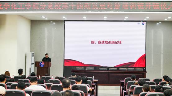 分党校第十四期发展对象培训班正式召开。大会第一项,潘刚峰书记对全体参训学员表示热烈欢迎,并对学员们的发展和成长提出三点期望:一是提高认识,明确培训目的;二是端正态度,力求学有所获;三是争先创优,发挥表率作用。潘书记鼓励学员们要牢牢把握此次教育的内容和要求,积极主动接受这场触及灵魂的思想政治洗礼,使自身在思想上来一次升华,政治上来一次淬炼,争取早日加入党组织!大会第二项,作为学员代表发言的19级本科化学专业的付于芯同学,为我们展现出了青年一代的活力与担当,展现出了青年一代为实现祖国的繁荣富强和中华民族的伟大复兴而不懈努力的决心!大会第三项,刘松书记宣读此次培训班的学员守则和纪律。刘松书记要求大家严格遵守党校学习纪律,服从管理,坚定理想信念,保持政治定力,不断提升完善自我,争取早日成为一名真正的共产党员!