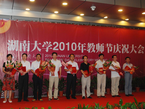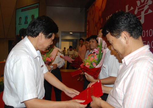 9月7日,在第26个教师节到来前夕,抢庄牛牛官方网站在逸夫楼隆重举行庆祝2010年教师节暨表彰大会。一批在教学、科研、管理等方面做出突出贡献的教职员工受到表彰和奖励。抢庄牛牛官方网站 发起向化学化工抢庄牛牛官方网站 蔡炳新教授学习的号召。全体在校校领导出席会议并为优秀教师和先进团队颁奖。