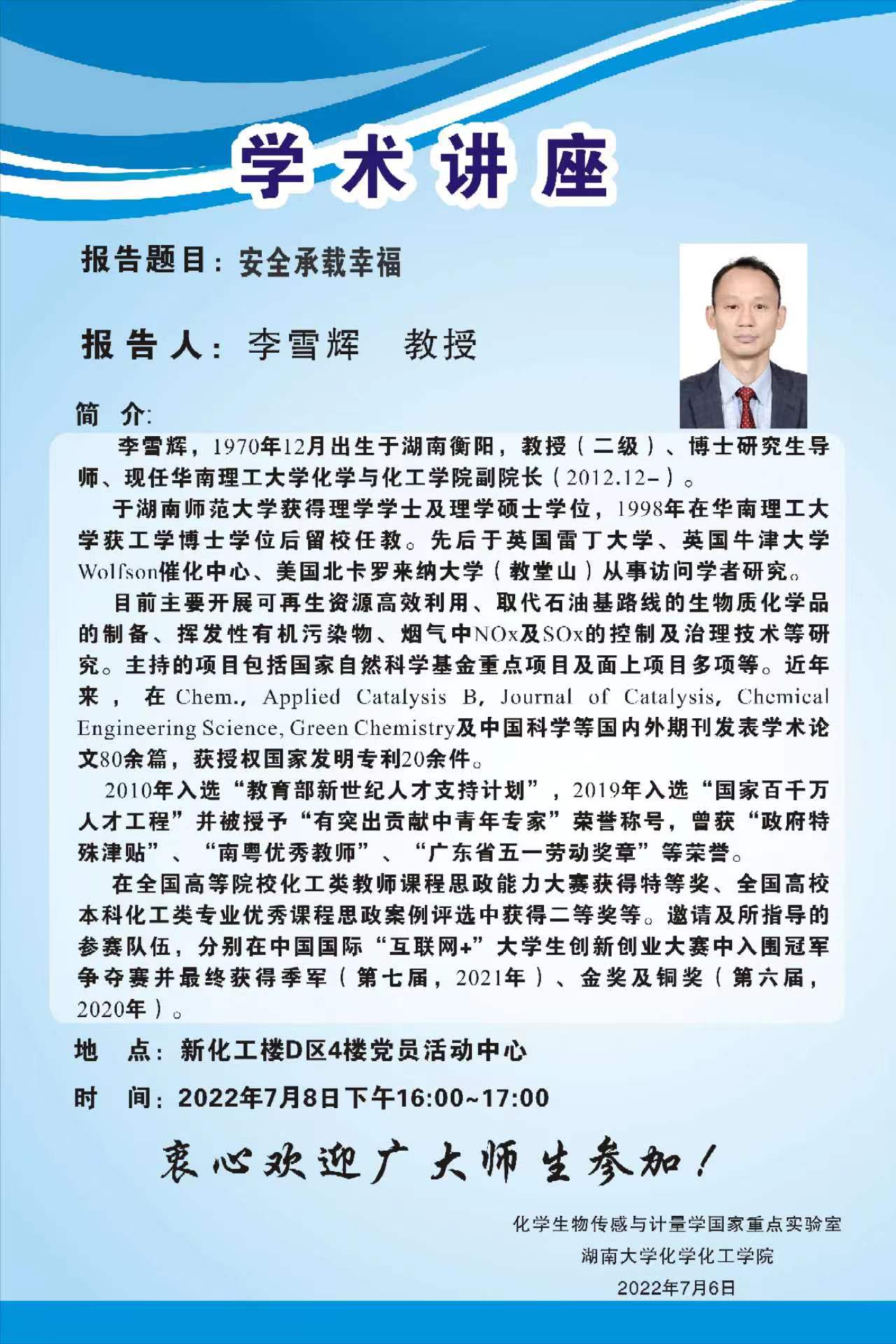 下一条:2022年7月8日华南理工大学李映伟教授学术报告会