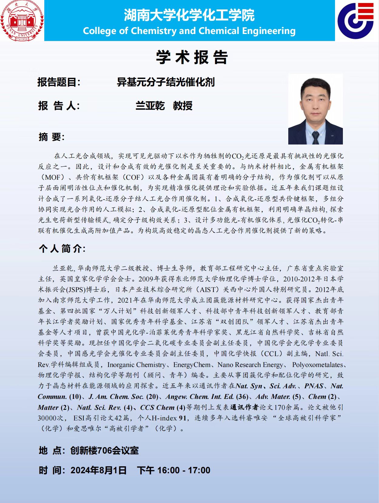 下一条:2024年8月1日复旦大学汪国雄教授学术报告会