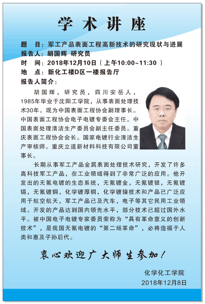 上一条:2018年12月14日四川大学高会乐教授学术报告会