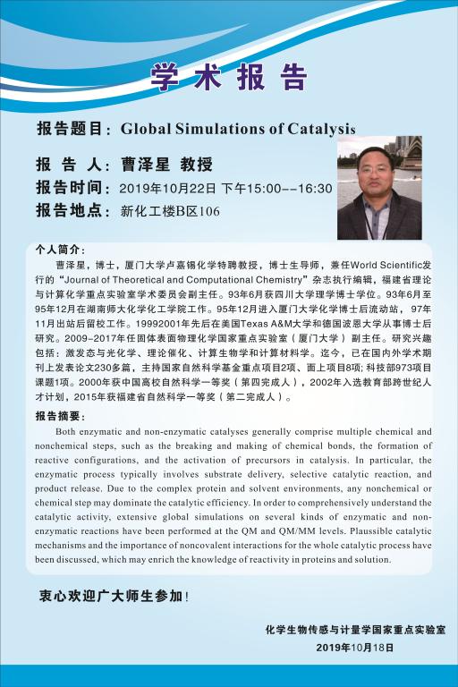 下一条:2019年10月22日西安交通大学杨涛教授学术报告会