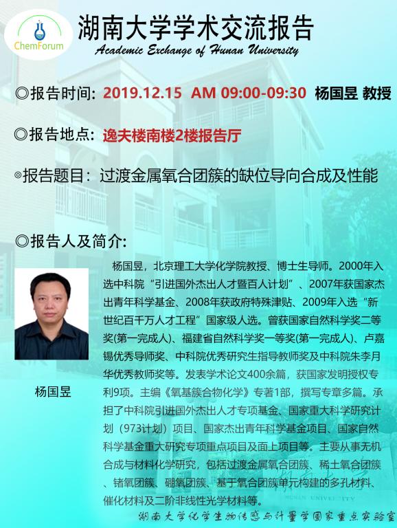下一条:2019年12月13日中国科学技术大学俞书宏院士学术报告会