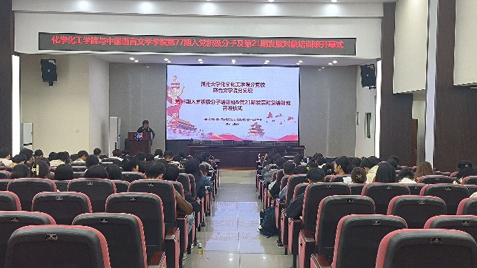第七十七期入党积极分子及第二十一期发展对象培训班开班仪式。本次培训目的旨在进一步提升入党积极分子及发展对象的思想政治素质,确保党员发展质量,共计100多名师生参加本次开班仪式。